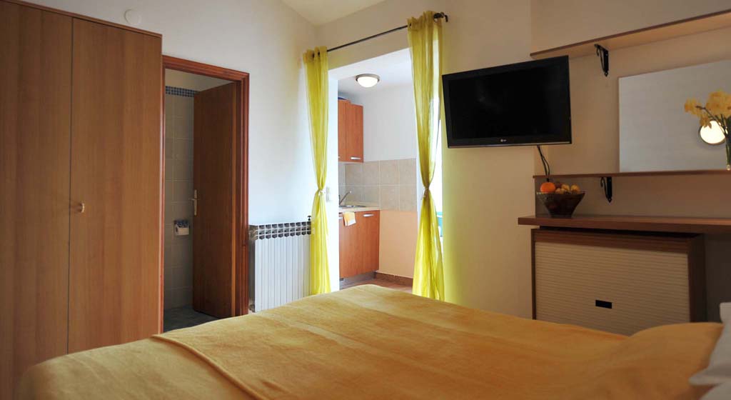 – opremljena kuhinja (posuđe, čaše, aparat za kavu, frižider)